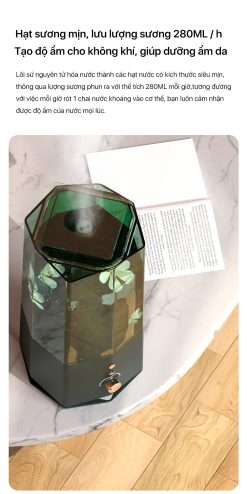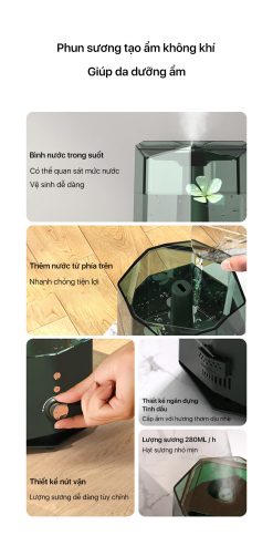 - Lưu lượng phun sương 280ml/h, hơi sương rất mịn không làm ướt sàn và đồ đạc